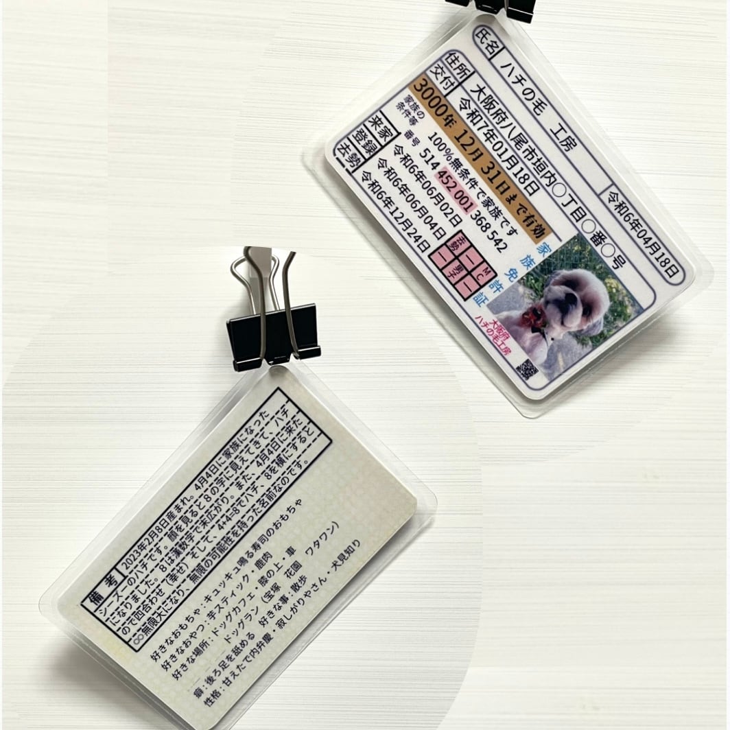 免許証風にアレンジしたペットが我が家の